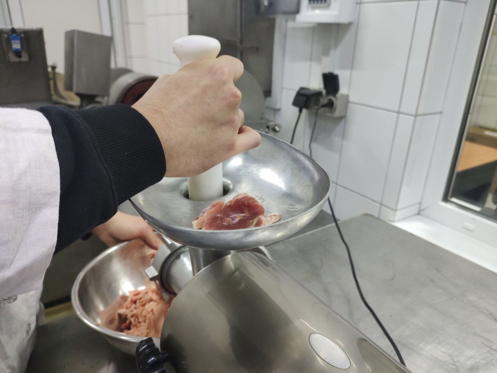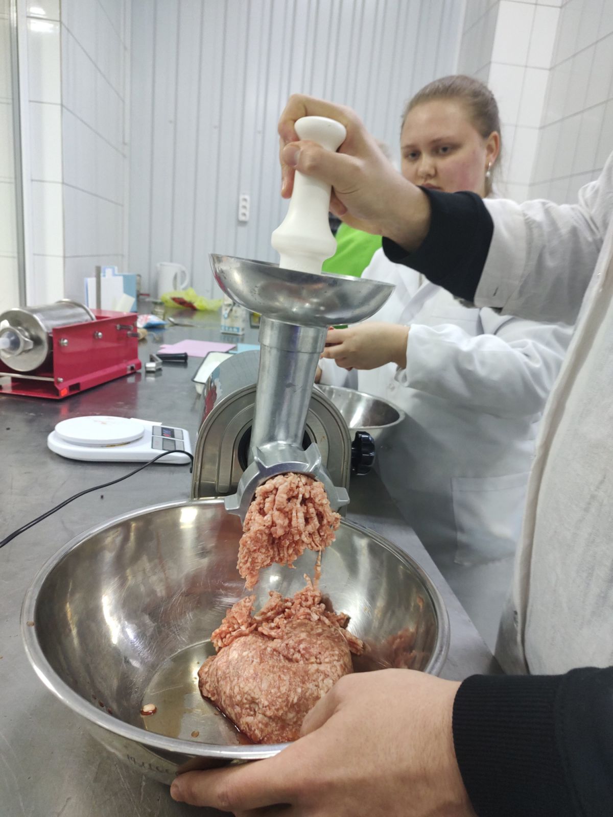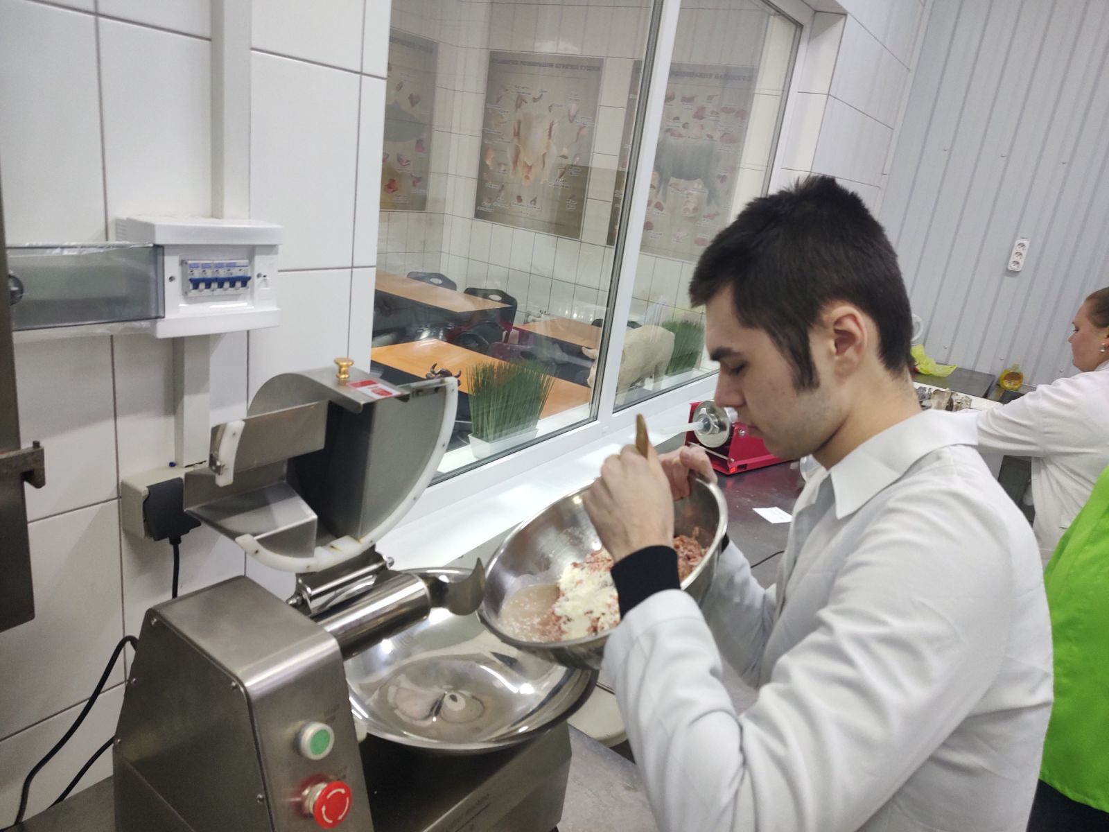 Було відпрацьовано технологічні операції підготовки, подрібнення, кутерування, формування та термічної обробки ковбасних виробів. Окрім цього здобувачі визначили якісні показники комбінованих фаршевих систем, і звичайно провели дегустацію, виготовлених власноруч, готових ковбас.