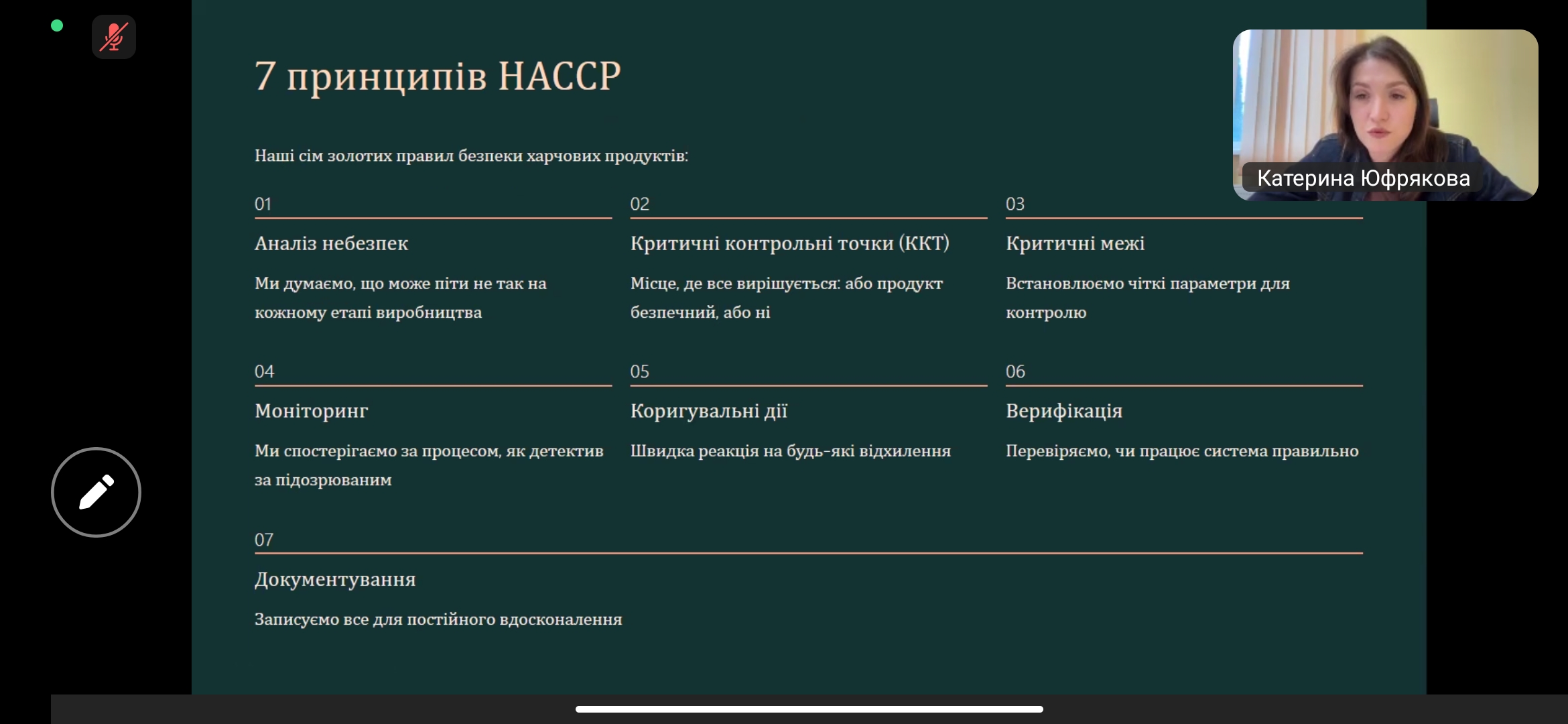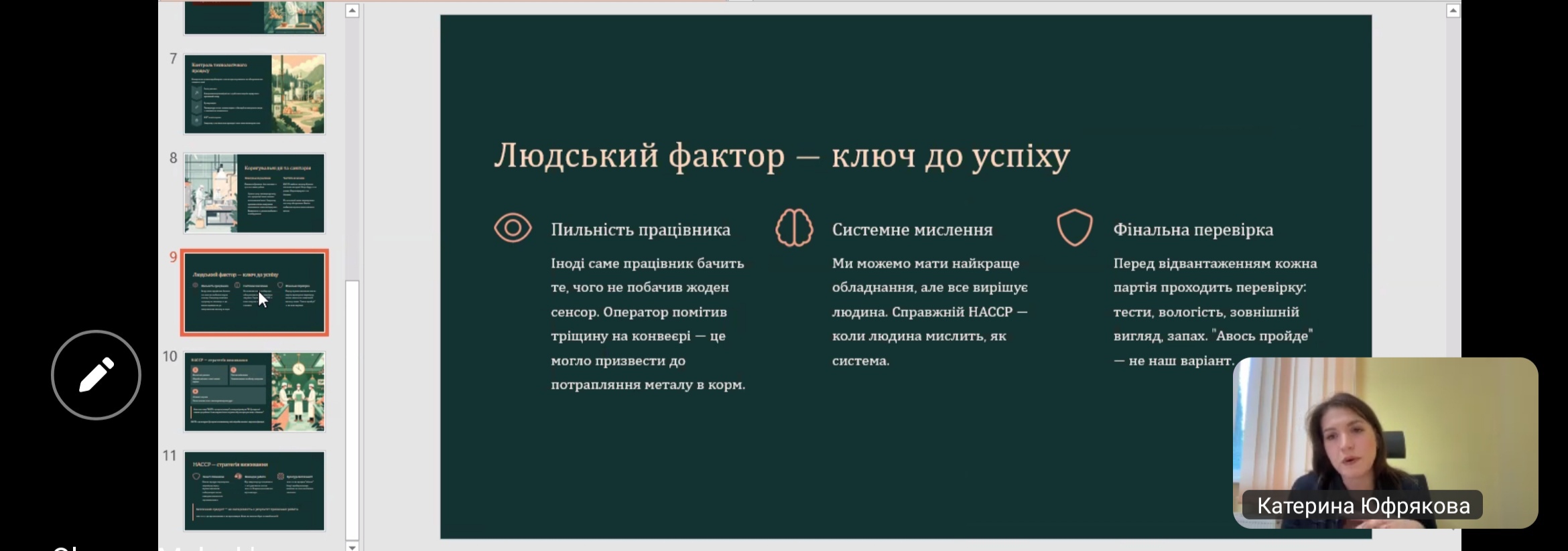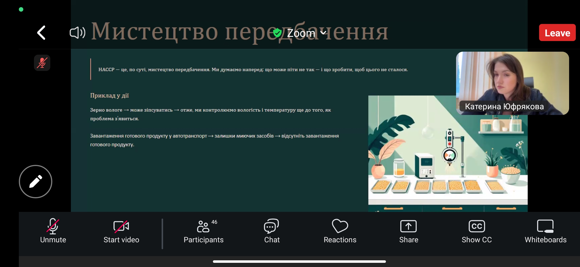 Онлайн-зустріч із Юфряковою Катериною, керівником відділу контролю якості Філії «Внутрішньогосподарський комплекс по виробництву кормів» ТОВ «Вінницька птахофабрика», була присвячена темі «HACCP у дії: як ми насправді запобігаємо харчовим небезпекам». Під час лекції учасники дізналися про принципи та практичну реалізацію системи НАССР, можливі небезпеки у харчовому виробництві та методи їх попередження, а також про етапи контролю якості, що гарантують безпечність продукції. Лекторка поділилася реальними прикладами впровадження системи на підприємстві, що дозволило слухачам зрозуміти її ефективність у зниженні ризиків і підвищенні довіри споживачів. Здобувачі освіти отримали корисний практичний досвід, ознайомилися із сучасними методами управління безпечністю харчових продуктів та зрозуміли важливість командної роботи у процесі впровадження системи. Зустріч стала важливим кроком у формуванні професійних компетентностей майбутніх фахівців харчових технологій.